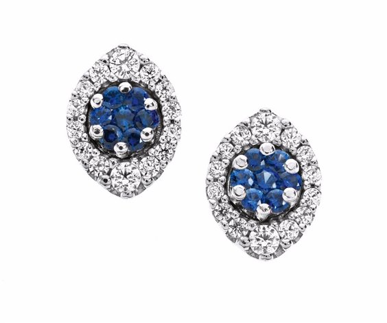Earrings in 18kt white gold with blue sapphires 0.20ct and 0.31ct diamond, color G, clarity Si1