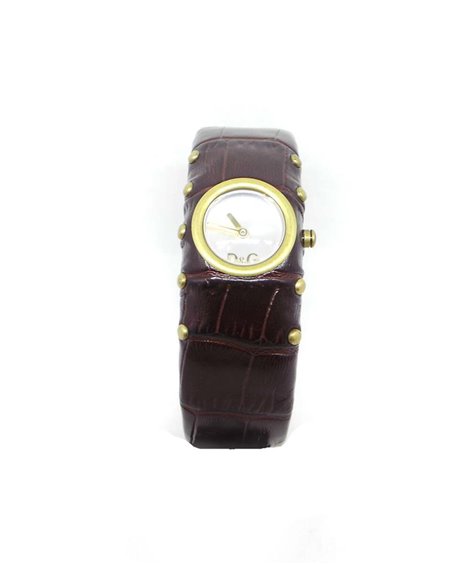 D&G quartz clock, built-in cash brown leather strap 21 mm, bezel and steel studs golden background stainless steel screw, no WR.Scatola and 2 years warranty.