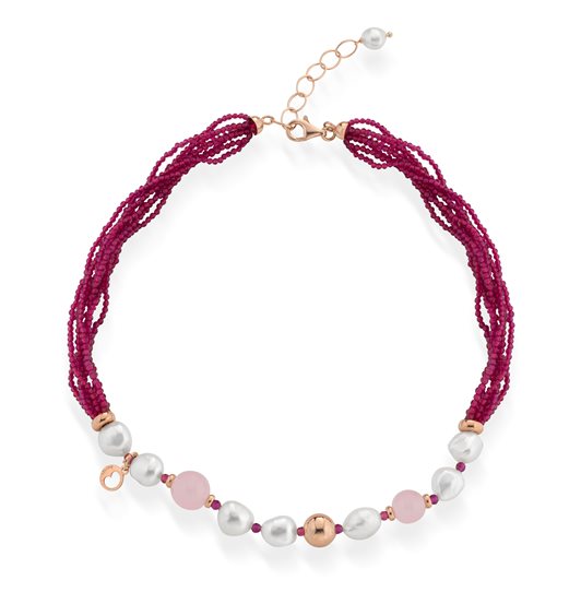 Collana con perle d’acqua dolce, AG925 rosa, spinello fuxia e giada rosa