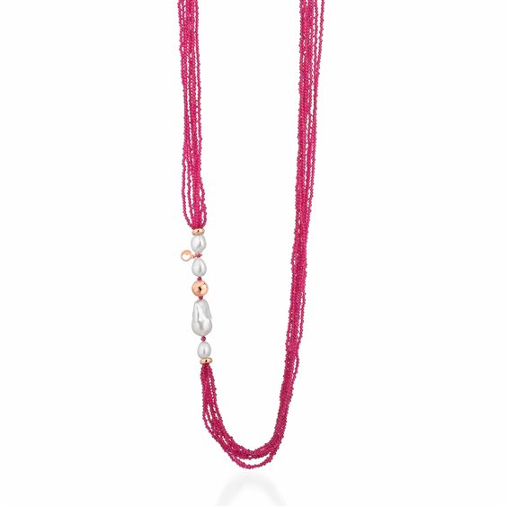 Collana con perle d’acqua dolce, AG925 rosa e spinello fuxia