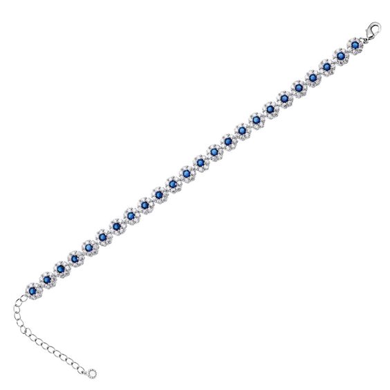 Bracciale in metallo ideato e realizzato da Ottaviani impreziosito da cubic zirconia bianchi e blu, lunghezza 19 centimetri,larghezza 0,7 centimetri, peso 15 grammi, chiusura deployante.
