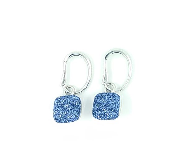 Coppia di Orecchini in Argento 925 con centrali in Polvere di Carbonio Azzurro.